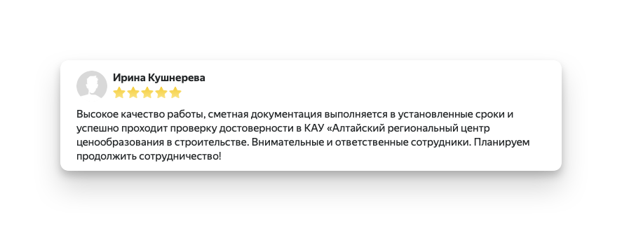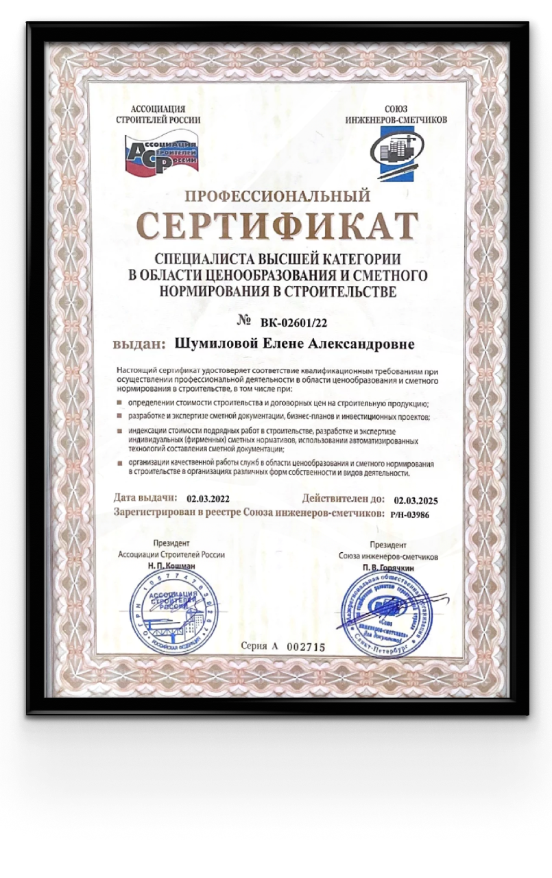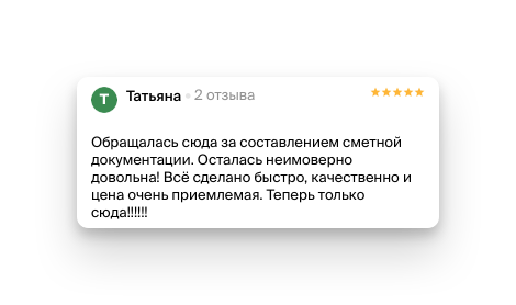 Мы осуществляем гарантийную поддержку всех составленных нами сметных расчётов и бесплатно производим корректировки наших смет по замечаниям заказчика или экспертной организации.